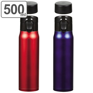 Lohaco 水筒 直飲み ステンレス 2way カフェマグ ワンタッチマグボトル 500ml スクリュー栓付 ブルー マグボトル 保温 保冷 スポーツボトル ダイレクトステンレスボトル ワンタッチ ステンレス製 魔法瓶 シンプル 500 子供 部活 水筒 マグボトル リビングート
